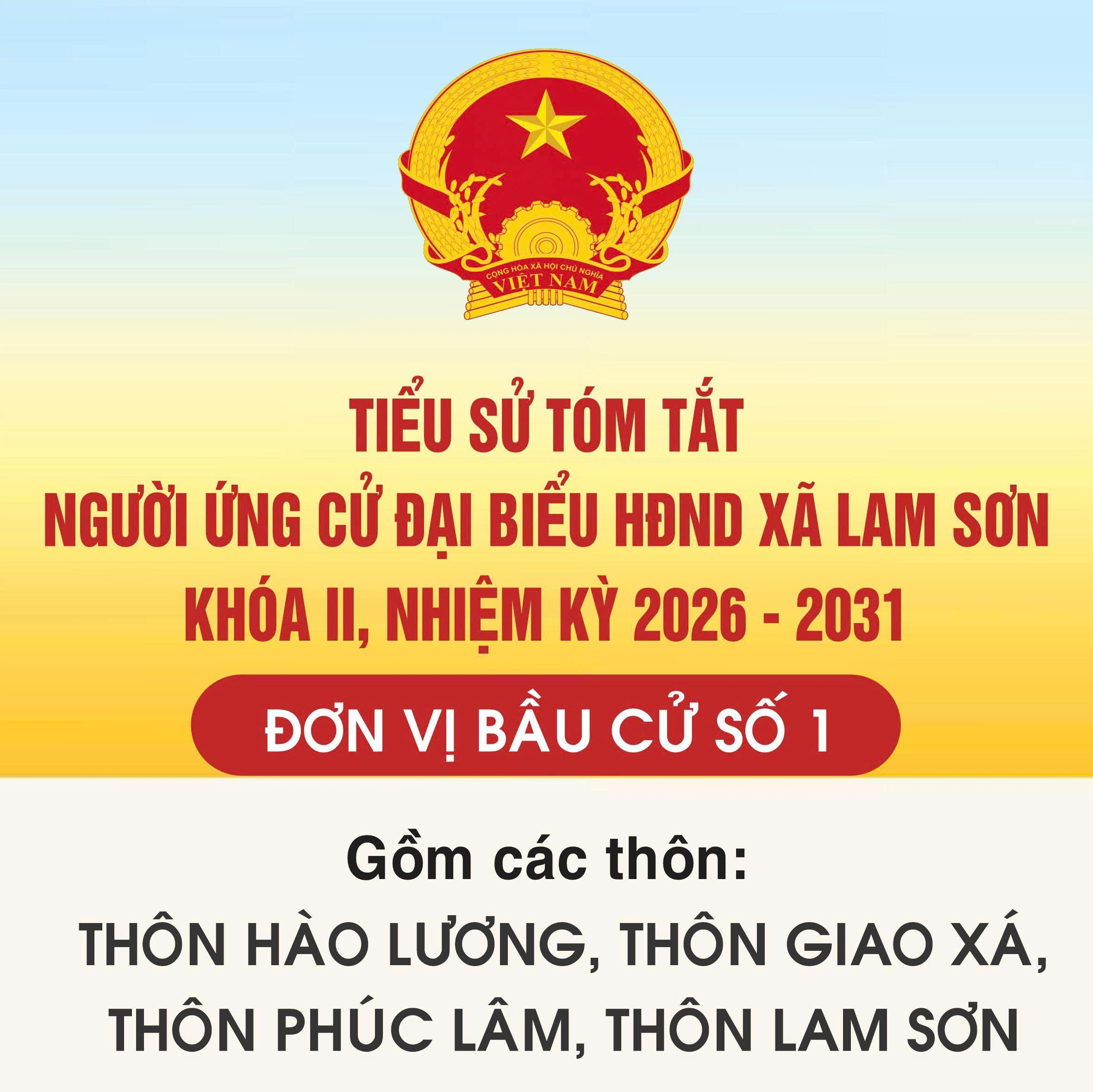 Công khai tiểu sử tóm tắt của các ứng cử viên đại biểu HĐND xã Lam Sơn khóa II, nhiệm kỳ 2026 - 2031 tại đơn vị bầu cử số 1