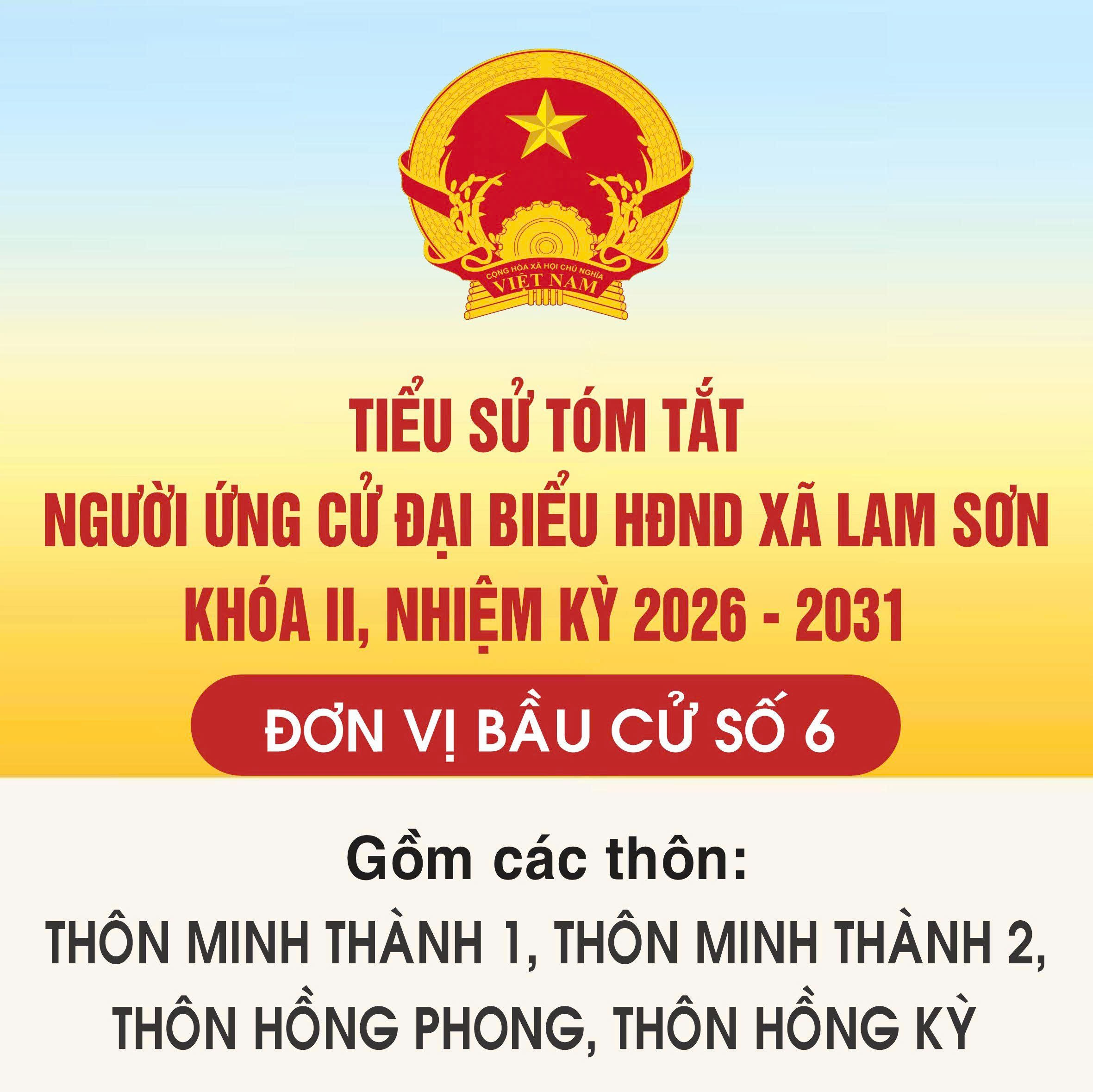 Công khai tiểu sử tóm tắt của các ứng cử viên đại biểu HĐND xã Lam Sơn khóa II, nhiệm kỳ 2026 - 2031 tại đơn vị bầu cử số 6